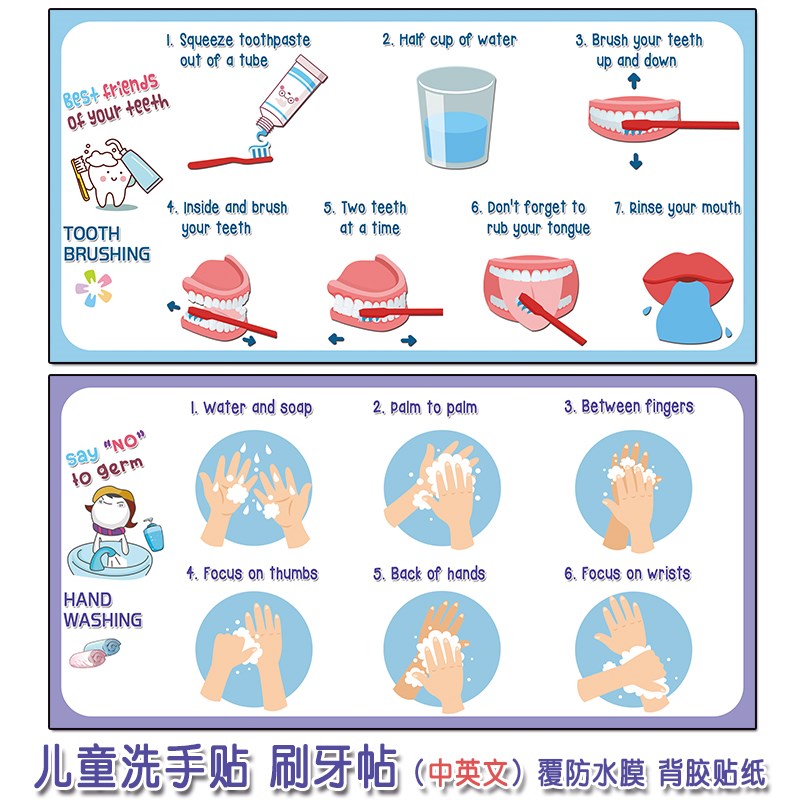 儿童洗手步骤贴纸刷牙步骤墙贴小朋友洗手流程刷牙流程防水墙贴图热门设计联盟服务商