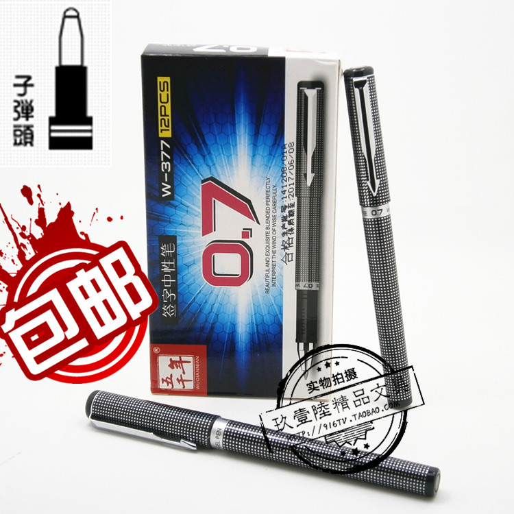 包邮五千年W-377中性笔 0.7mm水笔签字笔商务会议碳素笔格子纹热门设计联盟服务商