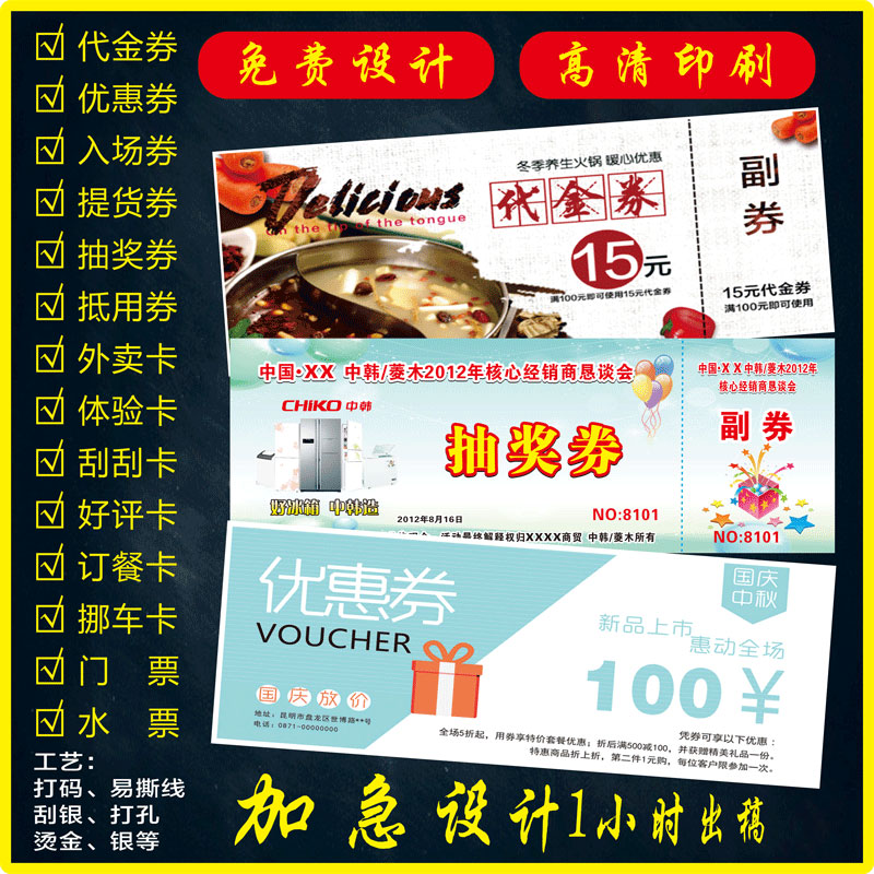 代金券优惠券制作印刷外卖名片订餐卡定制免费设计挪车卡片打印热门设计联盟服务商