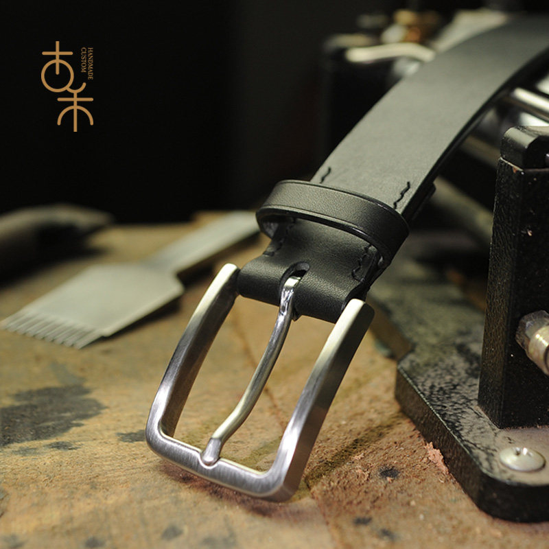 手工定制男士正装简约不锈钢针扣头皮带黑色商务百搭头层牛皮腰带热门设计联盟服务商