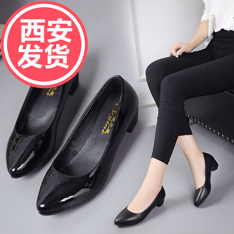 3cm小低跟粗跟鞋黑色皮鞋职业中跟工装ol正装浅口尖头空姐女鞋热门设计联盟服务商