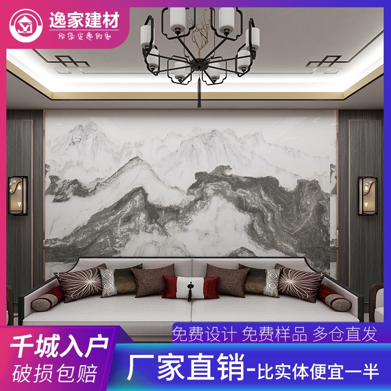 现代中式通体大理石电视背景墙瓷砖1200x2400客厅影视墙装饰墙砖热门设计联盟服务商