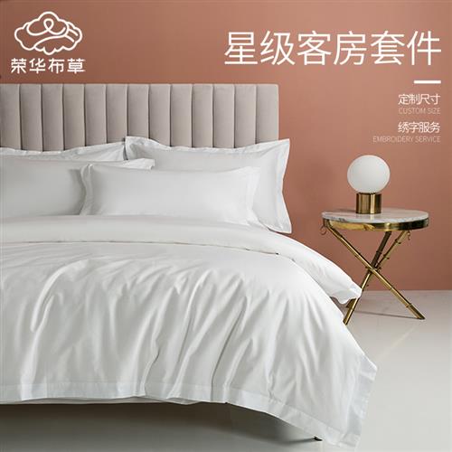 星级酒店床上用品四件套布草民宿宾馆全棉纯白色床单被套被罩热门设计联盟服务商