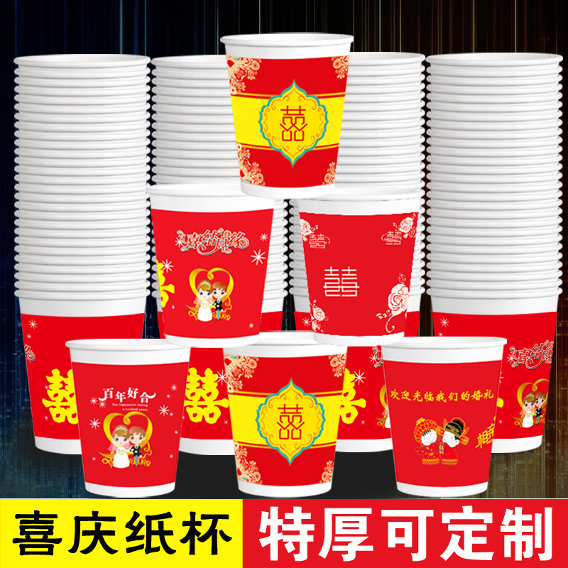 纸杯一次性杯子喜庆结婚庆礼大红双喜加厚500只发婚纱照批片印刷热门设计联盟服务商