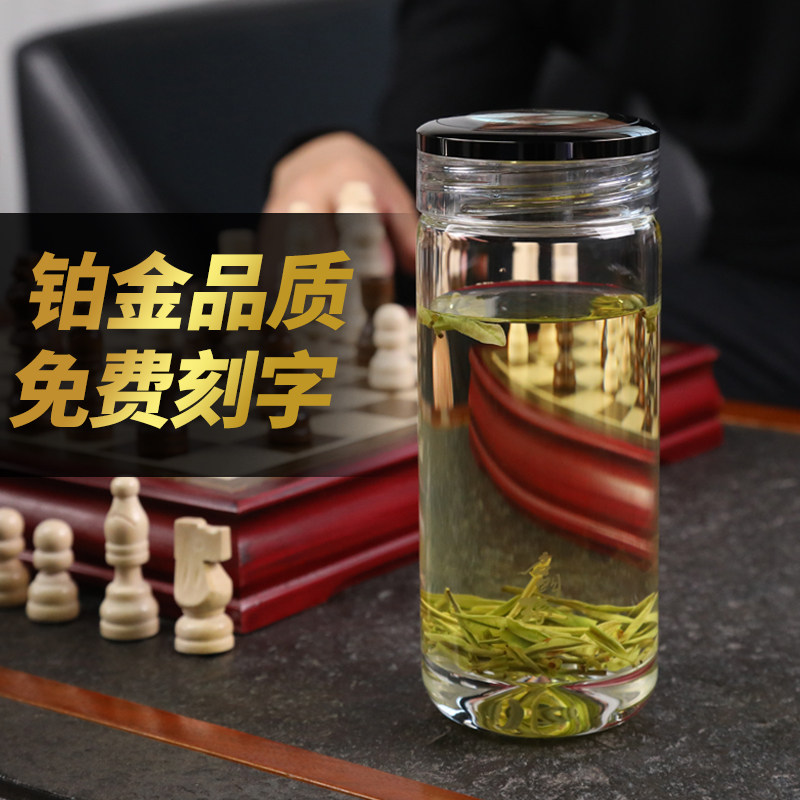 启明缘商务单层玻璃杯男士便携式加厚耐热保温水杯高档水晶泡茶杯热门设计联盟服务商