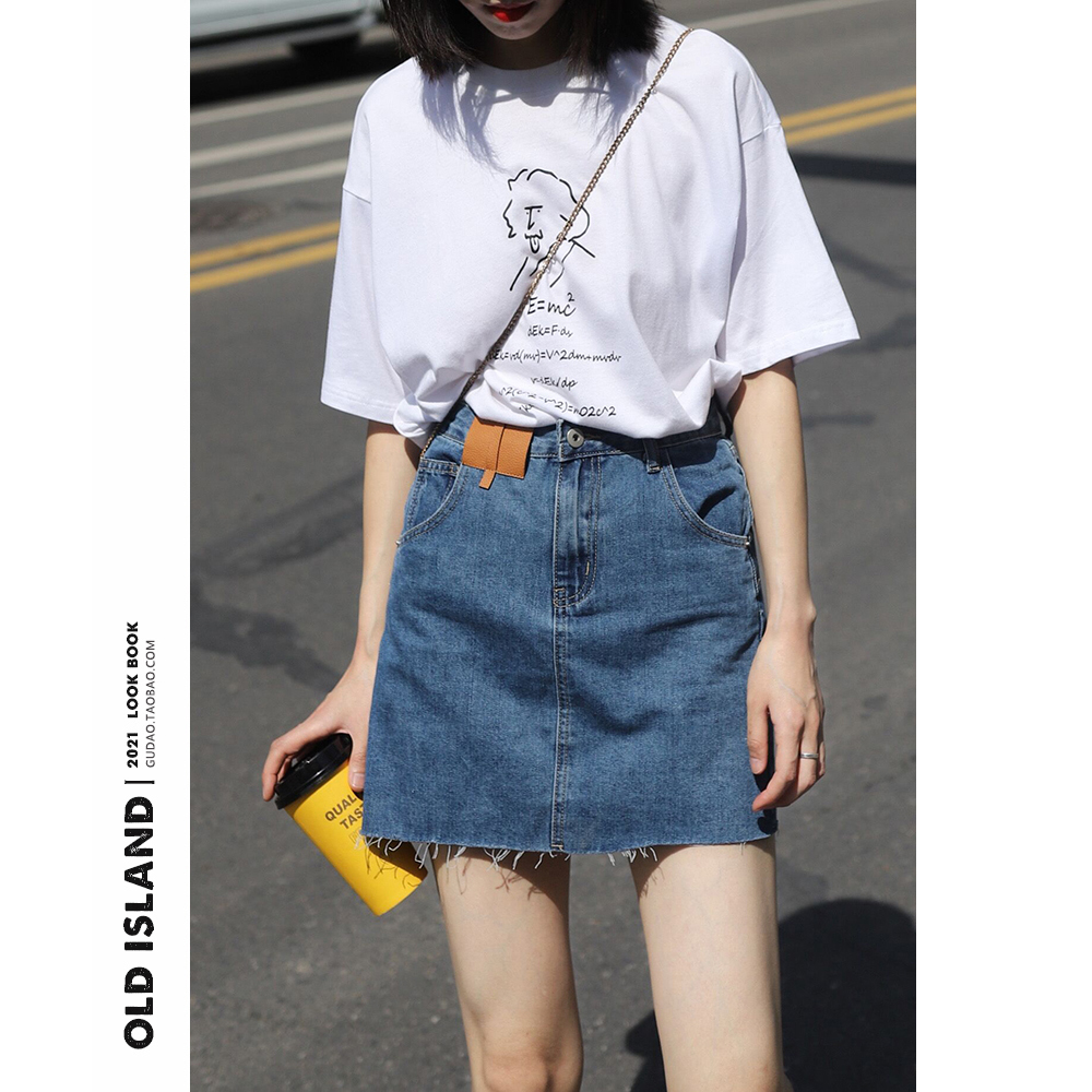 故岛设计感小众毛边复古牛仔短裙女夏季高腰显瘦a字半身裙包臀裙热门设计联盟服务商
