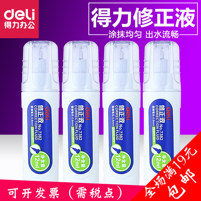 得力7382钢头修正液 学生涂改液 环保修正笔 12ml修改液 改正液热门设计联盟服务商