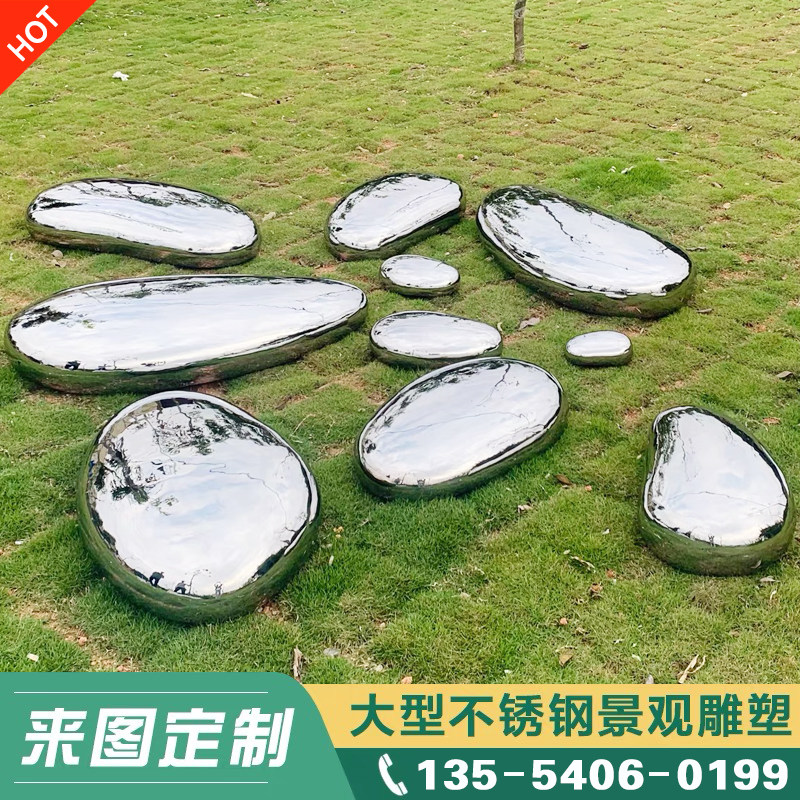 西安户外不锈钢鹅卵石头造型雕塑园林景观镜面大型落地艺术品摆件热门设计联盟服务商
