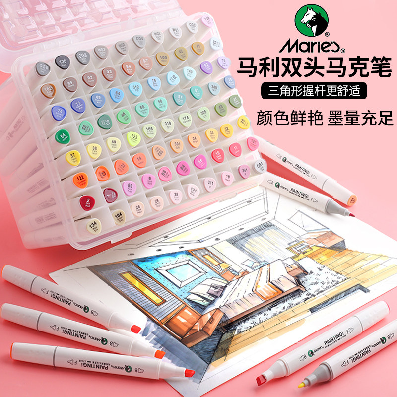 马利牌酒精油性双头马克笔套装60色学生用手绘设计彩色记号笔动漫彩笔初学者儿童小学生用24色美术漫画麦克笔热门设计联盟服务商
