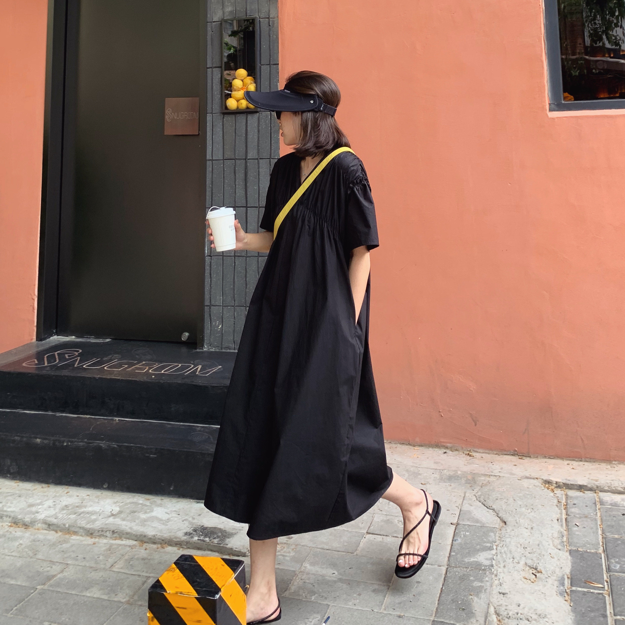 DAYU PERFECT 气质up不落俗 法式设计感V领纯色褶皱连衣裙夏热门设计联盟服务商