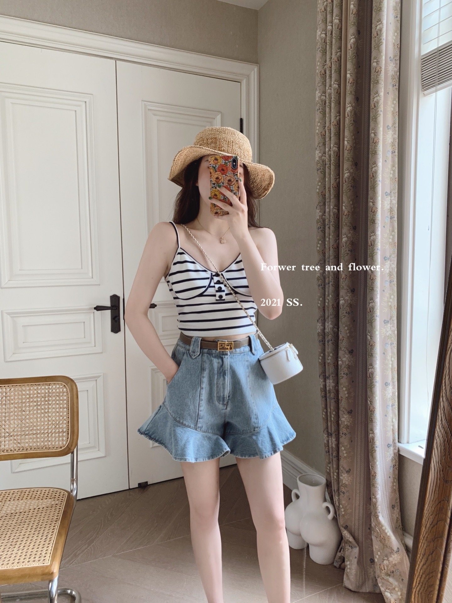 P tree 小飞边 夏日少女感减龄超显瘦设计感荷叶边仙气牛仔短裤热门设计联盟服务商