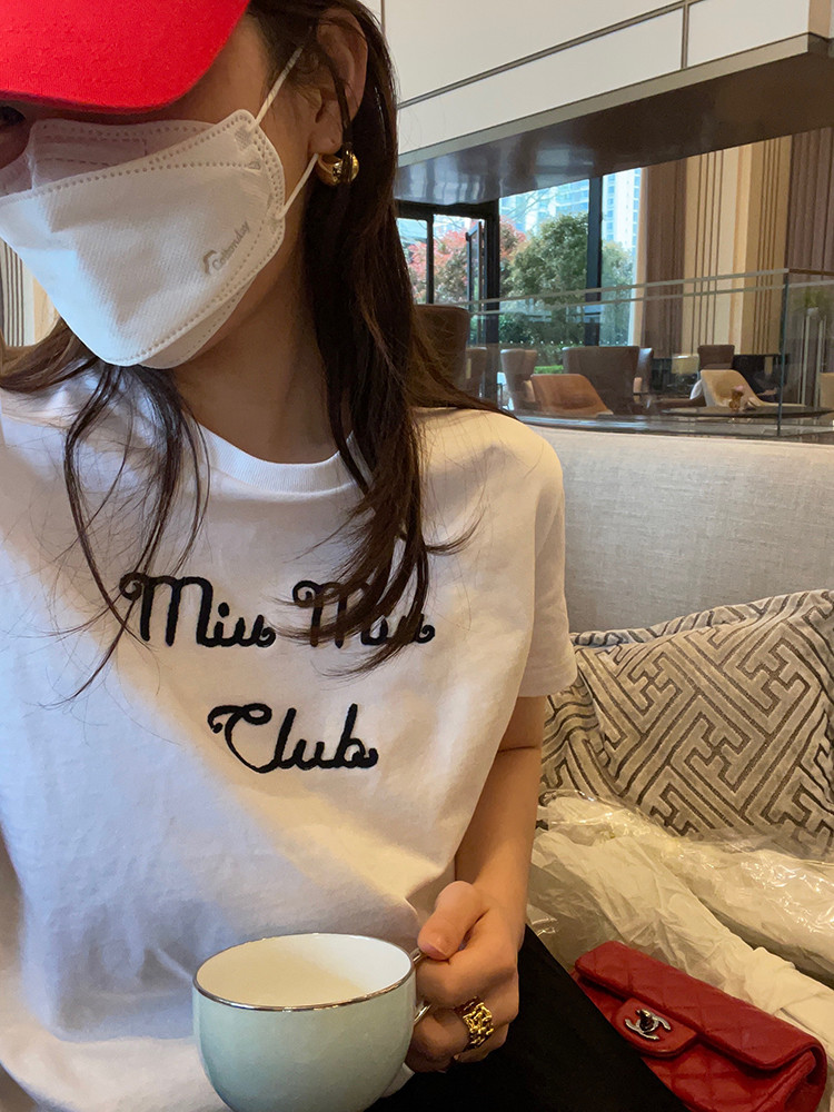 OCT /休闲百搭手绣字母设计纯棉白色短袖T恤女夏季半袖体恤上衣热门设计联盟服务商